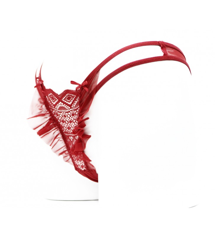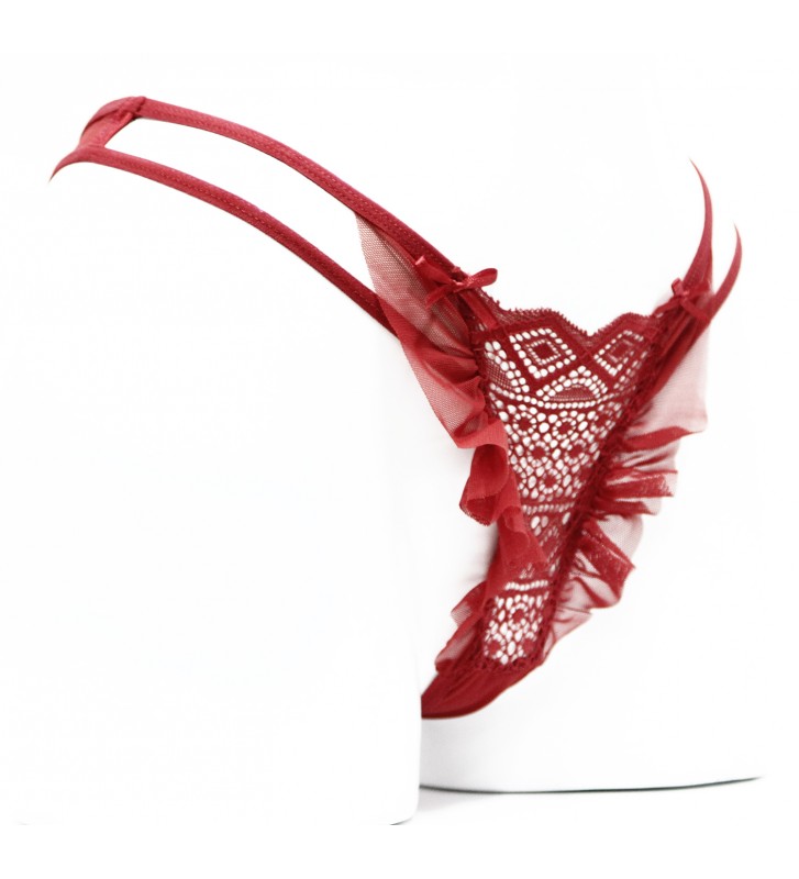 Στρινγκ γυναικείο όλο με δαντέλα και διπλό βαμβακερό καβάλο.