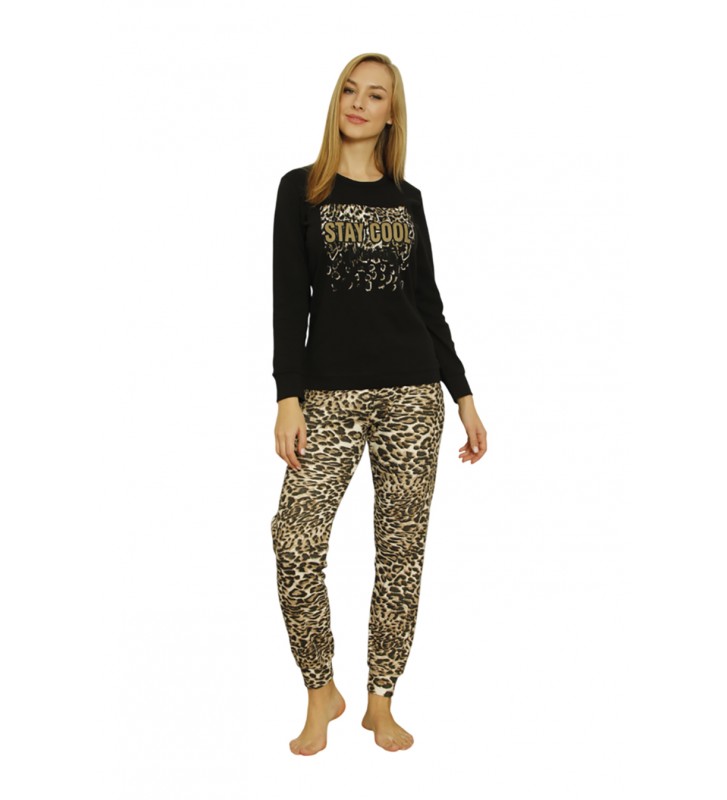 Γυναικεία πιτζάμα βαμβακερή με λάστιχο στα μανίκια, στη μέση και στο τελείωμα του παντελονιού.