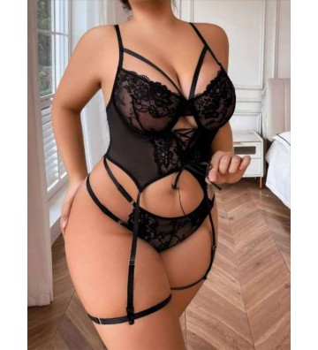 LINGERIE SET BIG SIZE WITH SUSPENDERS WOMEN'S BLACK J-89