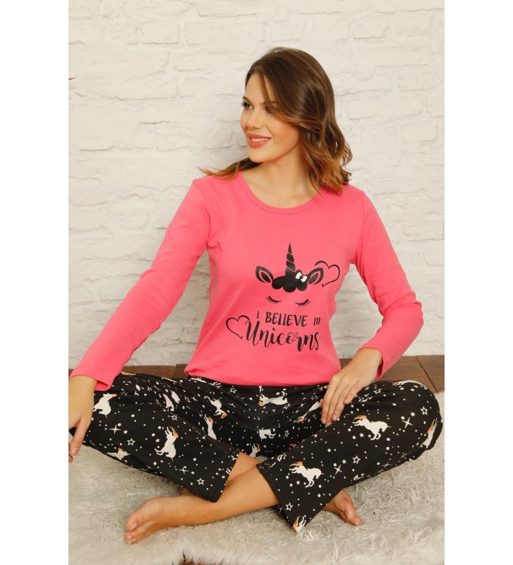 WOMEN'S CORAL PAJAMAS WITH UNICORN 20212057KOR