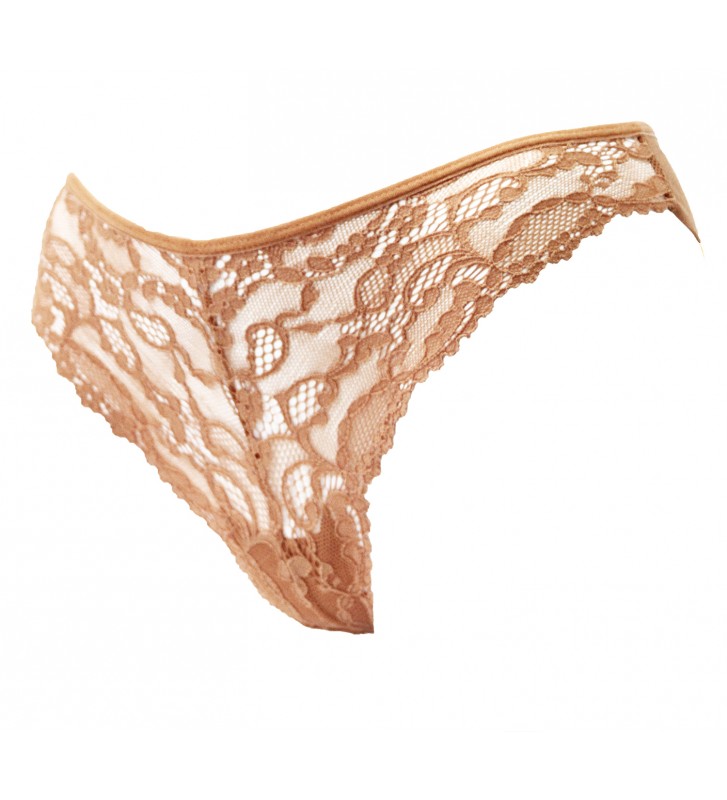 Brazil women's underwear with lace front, with external elastic and cotton crotch.