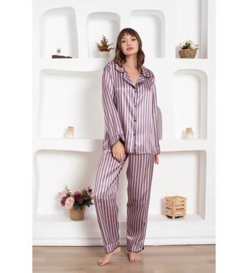 WOMEN'S SATIN PIJAMA WITH STRIPES GREY 0083-1GK